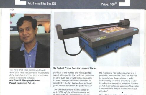We purchased UVision 5ft x 3ft three years back for our production of metal labels. We decide on UVision as the ink on metal labels was very durable and bright in colors. Macart helped us in providing perfect pre coats and inks for our application. We are very satisfied with the printer and Macart support