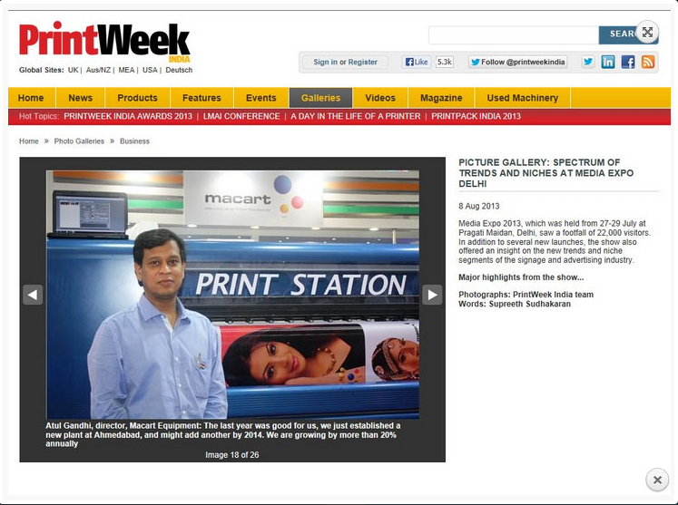 Date : 14 Feb 2014 We are pleased to inform you that Macart Equipment Pvt Ltd (MEPL) is participating in MediaExpo-2014 Mumbai Goregon East- 2014. A completely dedicated indoor & outdoor advertising and signage solutions and is India’s